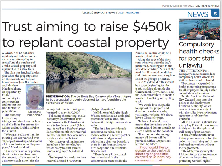 The Le Bons Bay Conservation Trust, NZBN: 9429052021114, 2024